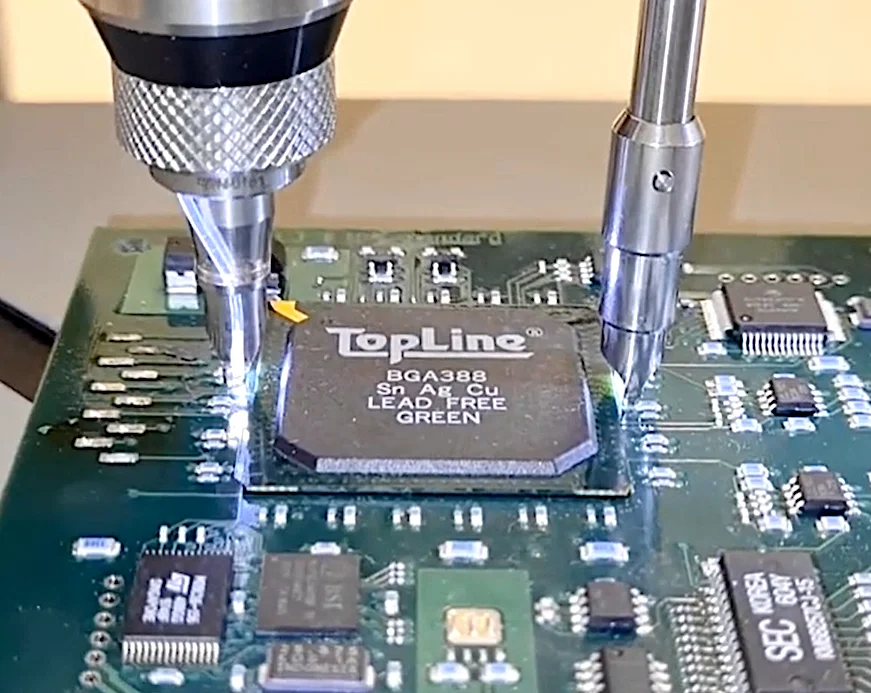 Im Zuge der Miniaturisierung der Elektronik wurden BGA-Gehäuse und ihre Abstände zu benachbarten Komponenten jedoch immer kleiner, so dass es bei immer mehr Baugruppen zunehmend schwieriger bis unmöglich wurde, die optische Sonde des BGA-Inspektionssystems vor dem BGA-Gehäuse zu platzieren. Um dieser Herausforderung zu begegnen, hat Inspectis AB sein bewährtes BGA-Inspektionssystem nun mit einer speziellen Miniatursonde ausgestattet. Diese neue Mikrosonde misst lediglich 0,4 x 3,5 mm und kann daher auch auf eng bestückten Leiterplatten und an sehr kleinen Gehäusen zum Einsatz kommen.
