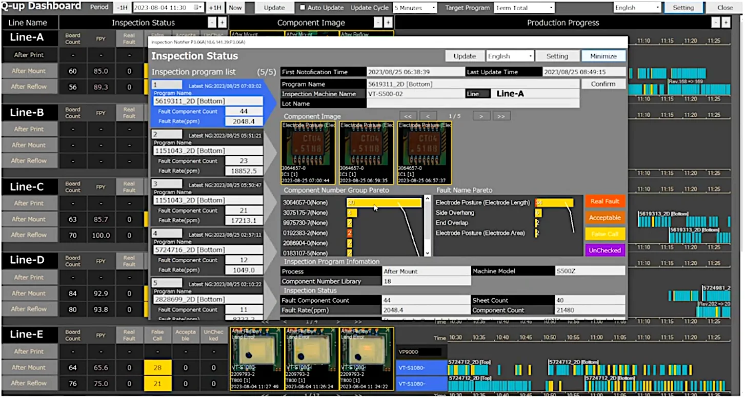 Q-upAuto-I ist eine Erweiterung von Q-upNavi, die speziell für die Überwachung und Optimierung von Produktionslinien in der SMD-Fertigung entwickelt wurde. Es sorgt autonom für die Aufrechterhaltung der hohen Qualität und hohen Produktivität der Produktionslinie. Mit Q-upAuto-I ist sofort erkennbar, an welcher Linie, in welchem Modell und in welchem Prozess das Problem liegt sowie dessen Status. Q-upAuto-I spart Zeit bei der Analyse, erhöht die Effizienz der Inspektion und reduziert Zeitverschwendung bei der Sichtprüfung.